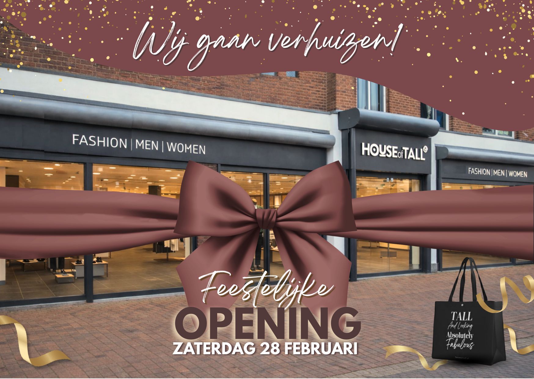 Op zaterdag 26 februari openen we om 10.00 uur officieel de deuren van onze nieuwe winkel. Nóg meer ruimte voor nóg meer leuke fashion voor lange mannen en lange vrouwen! De feestelijke opening wordt verricht door wethouder Nick Derks van de gemeente Apeldoorn. Kom je samen met ons proosten?