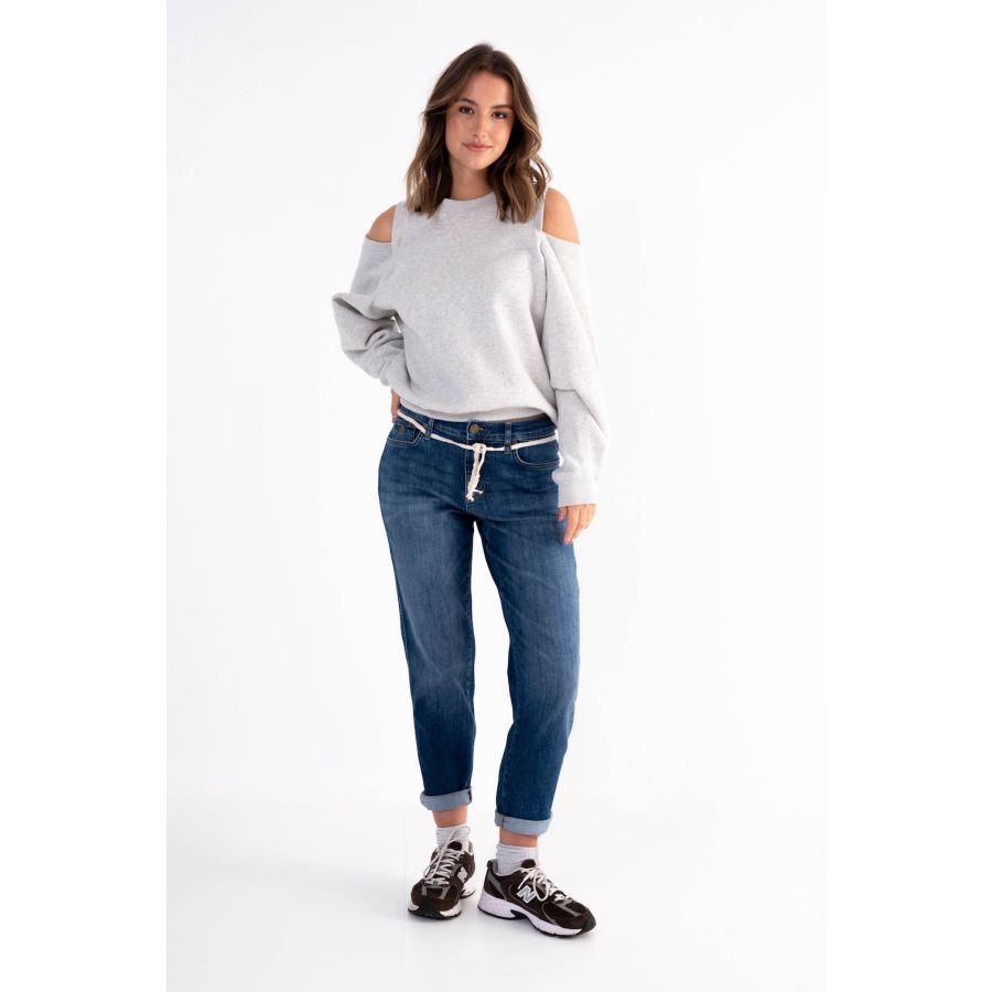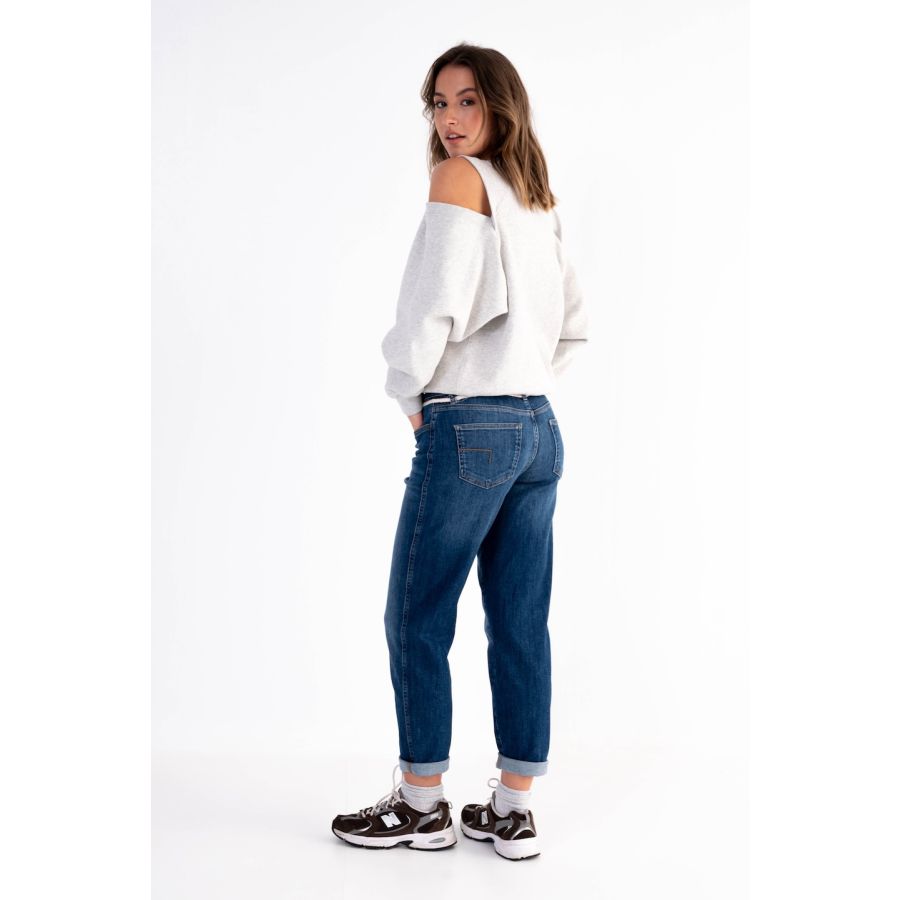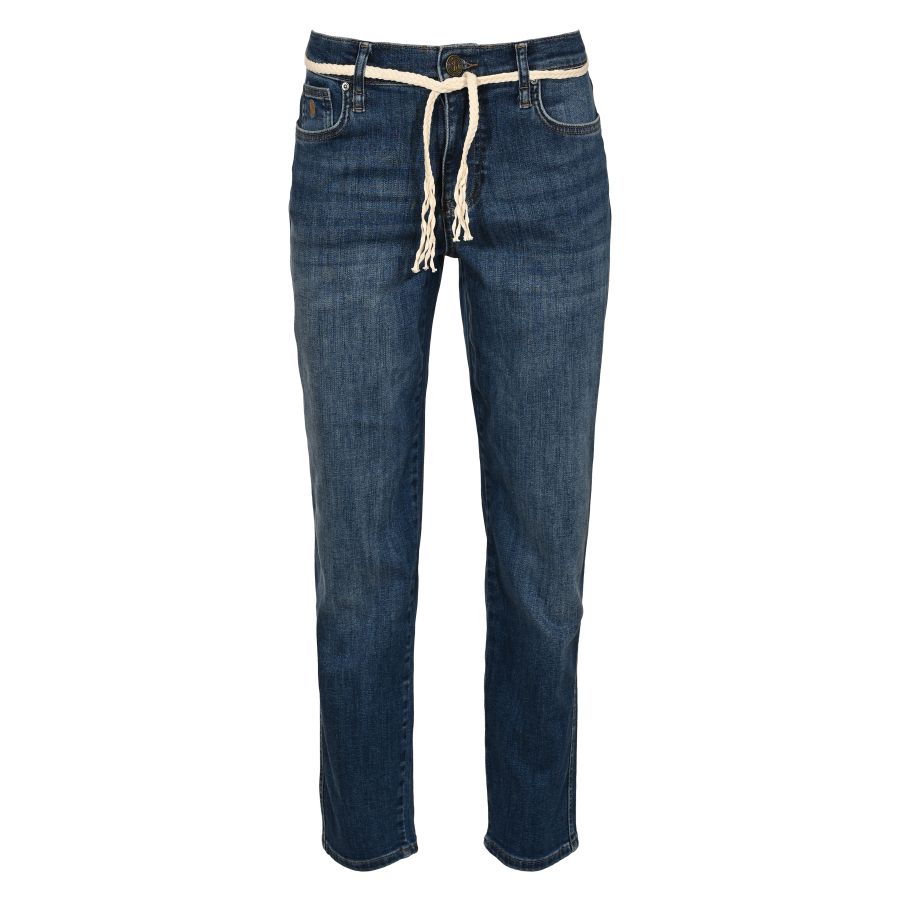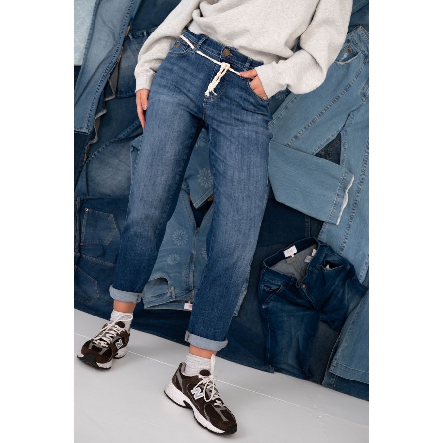 Carrot fitted 5-pocket jeans met regular waist en koord in de taille om te strikken. De jeans draagt comfortabel