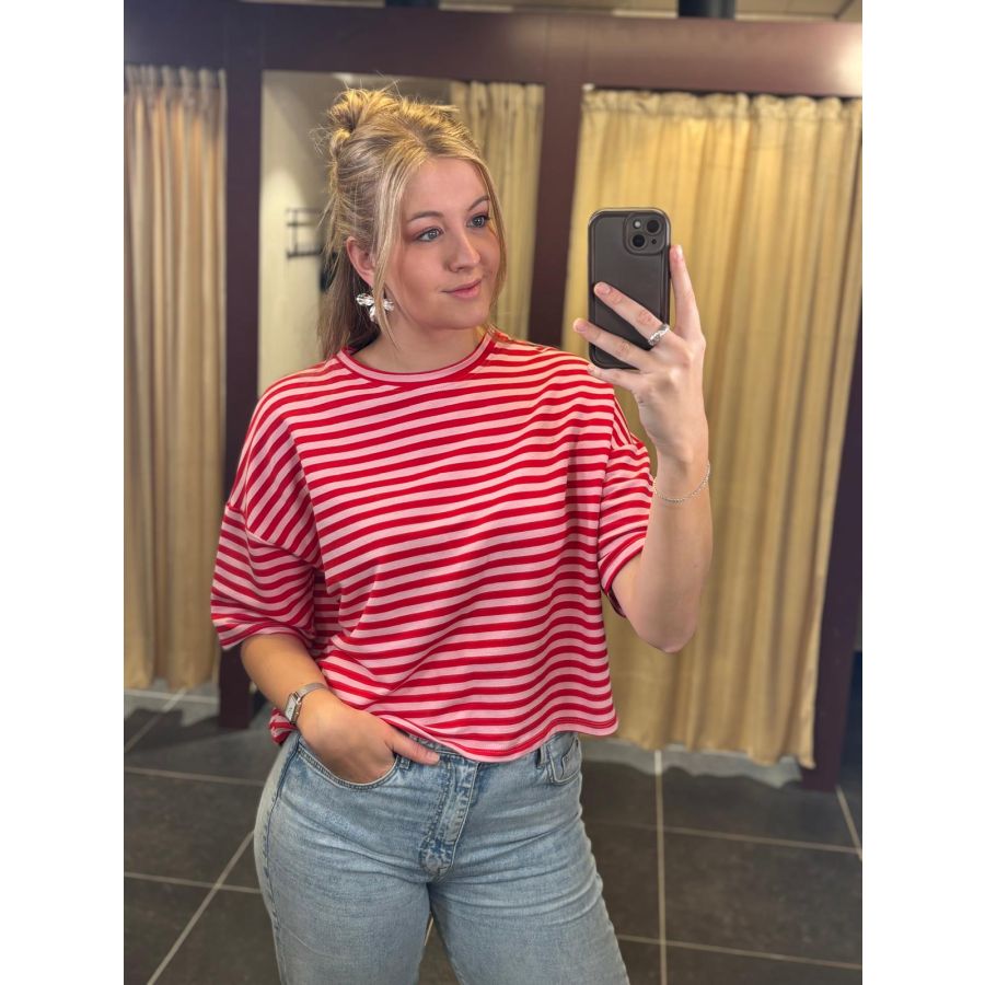 Leah stripe shirt rood/roze