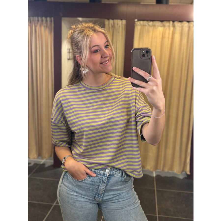 Leah stripe shirt groen/lila